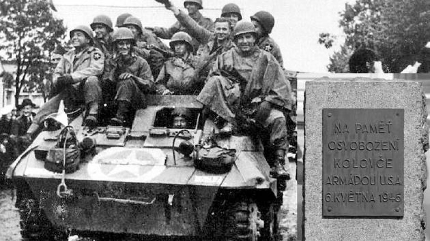 Rok 1945 – v neděli 6. května v 9 hodin dopoledne vjela do Kolovče vojska USA a dále pokračovala k Plzni. Byli to vojáci 3. armády pátého sboru druhé divize. V obci zůstal oddíl dělostřelecké baterie se šesti houfnicemi a družstvo se dvěma letadly typu Pipper, a to na lukách pod hřbitovem. Další vojáci byli ubytováni po domech a zůstali zde do 13. října 1945.