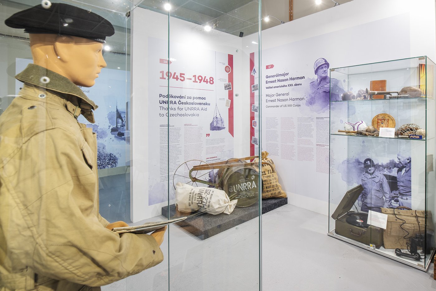 • Jako jediné muzeum v Česku se věnuje osvobození západních a jihozápadních Čech americkou armádou na jaře roku 1945. Nová expozice provází osvobozením českého západu a mapuje cestu Spojenců od vylodění v Normandii, přes bitvu v Ardenách až po pobyt amerických jednotek a působení Československé samostatné obrněné brigády na západě Čech. V muzeu se dozvíte, co místnímu obyvatelstvu po letech strádání přinesla poválečná hospodářská pomoc UNRRA. Expozice se věnuje také tomu, jak nešťastným směrem se vydal poválečný vývoj v Československu.